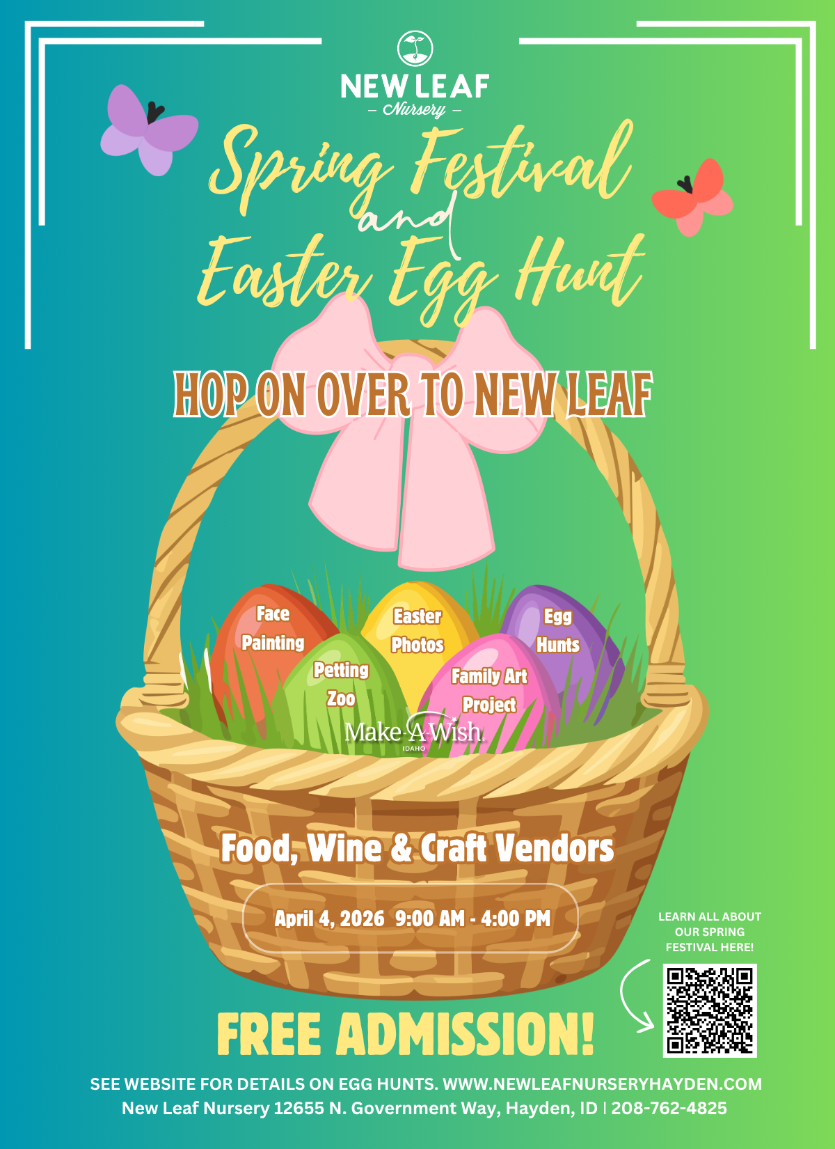 Be sure to join in on our community art project before you leave the nursery—just follow the signs throughout the grounds to take part in this fun new activity! We’re also excited to welcome back the Make-A-Wish Foundation. Don’t forget to stop by their booth and pick up one of their magic eggs!